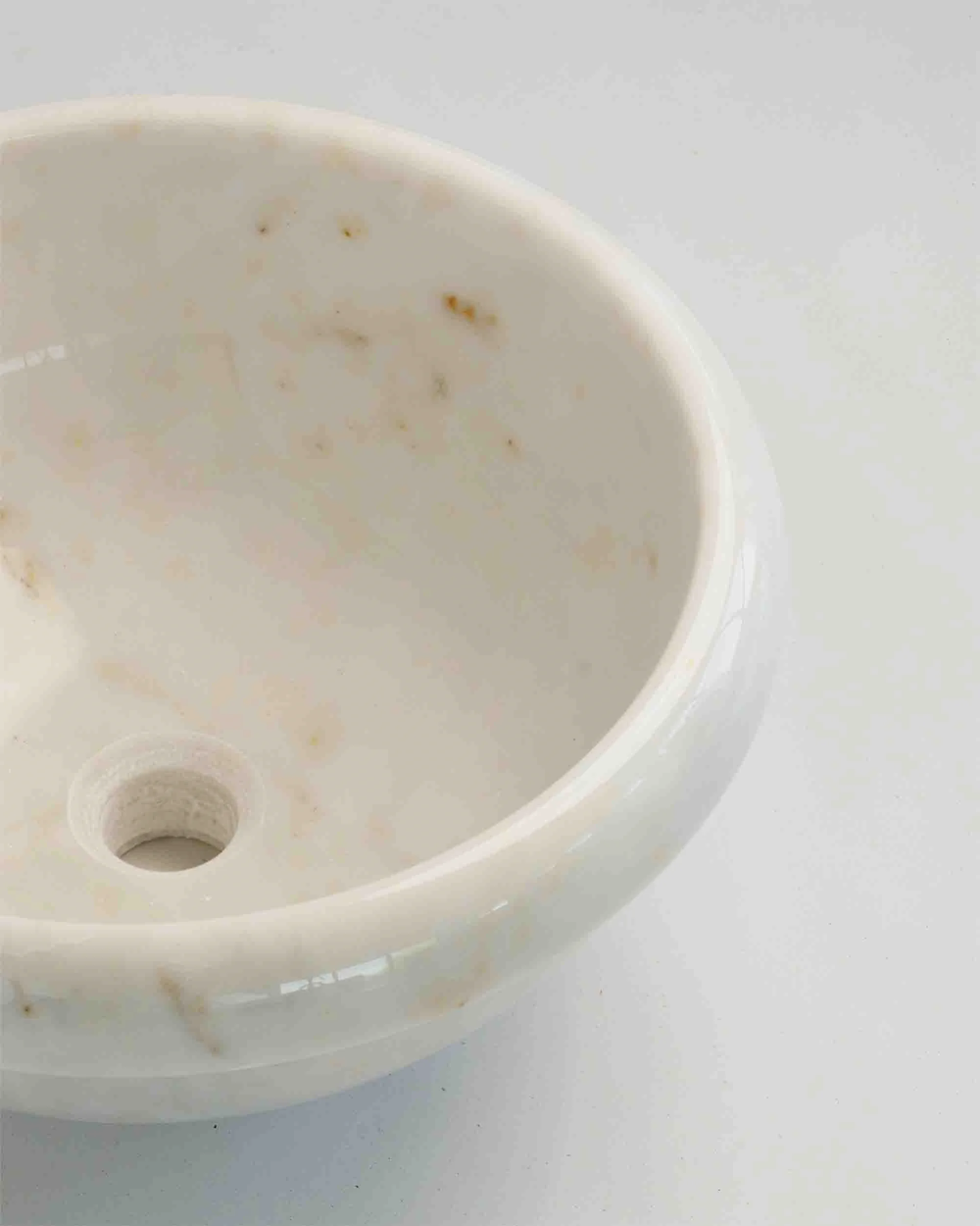 Ψηλός μαρμάρινος λευκός νιπτήρας στρόγγυλος