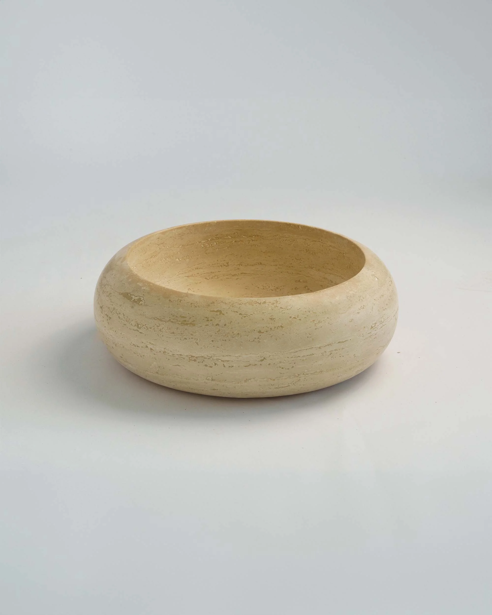 Κρεμ νιπτήρας στρόγγυλος από πορόλιθο με στρογγυλές πλευρές