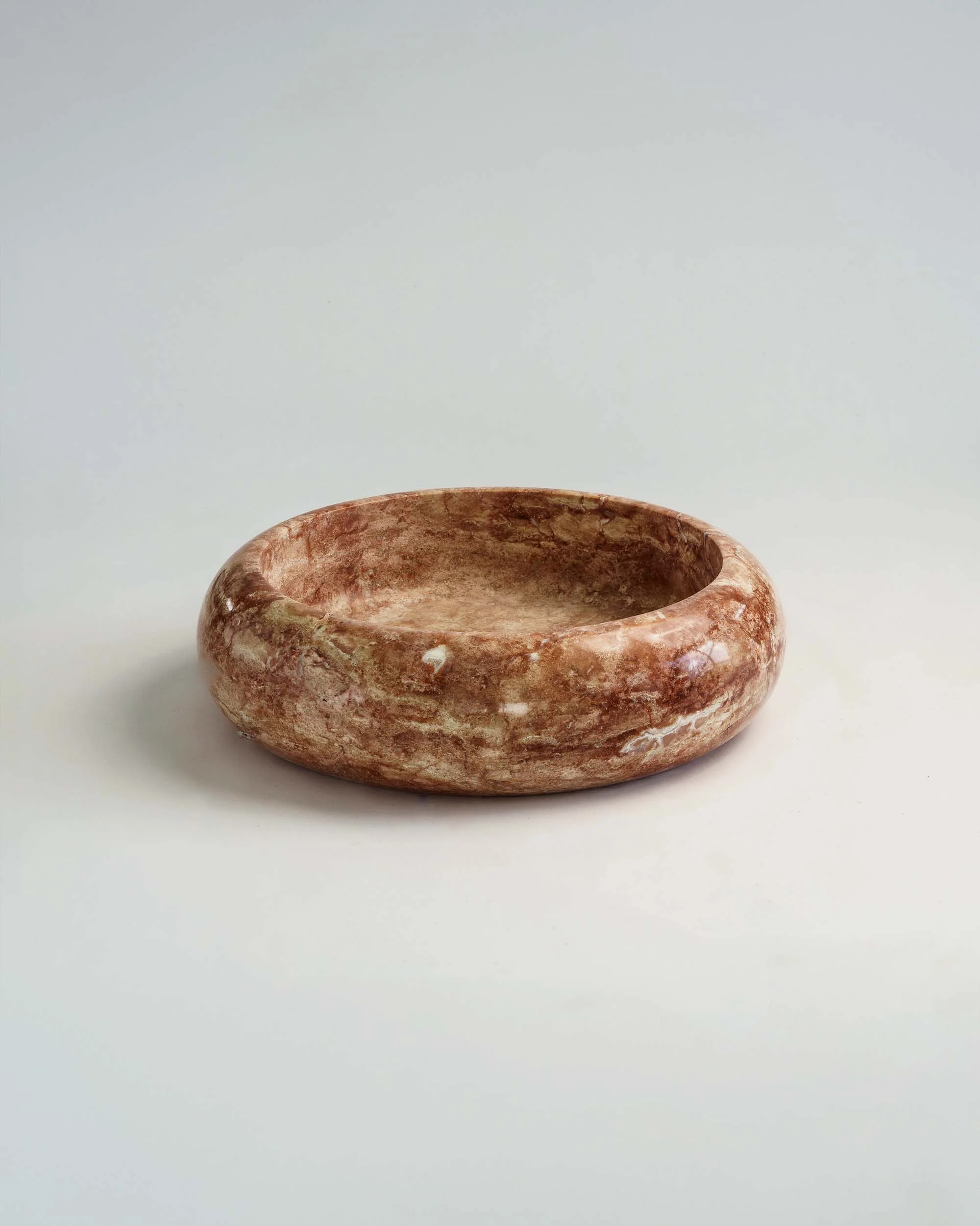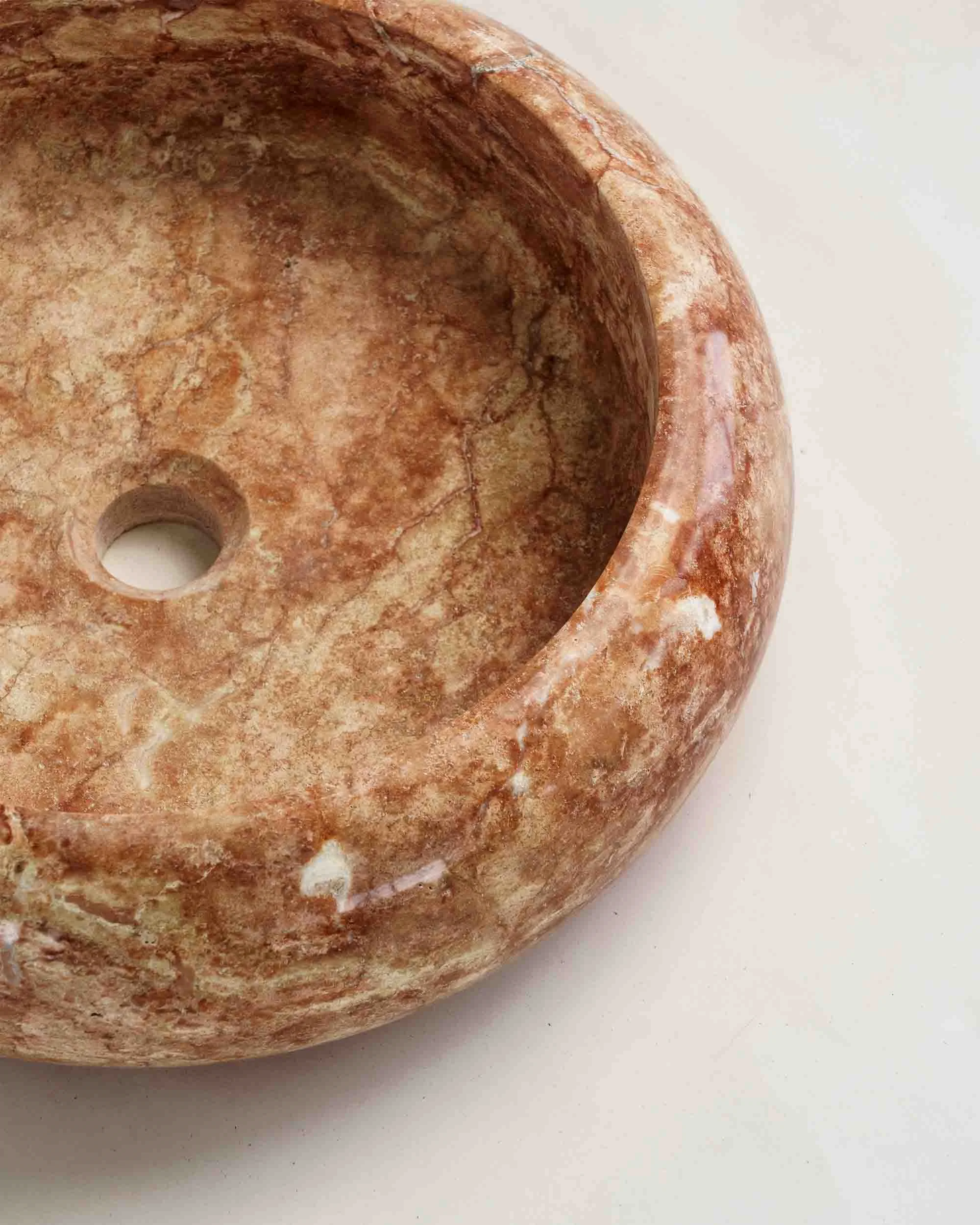 Καφεκόκκινος νιπτήρας στρόγγυλος από πορόλιθο με σφαιρικές πλευρές