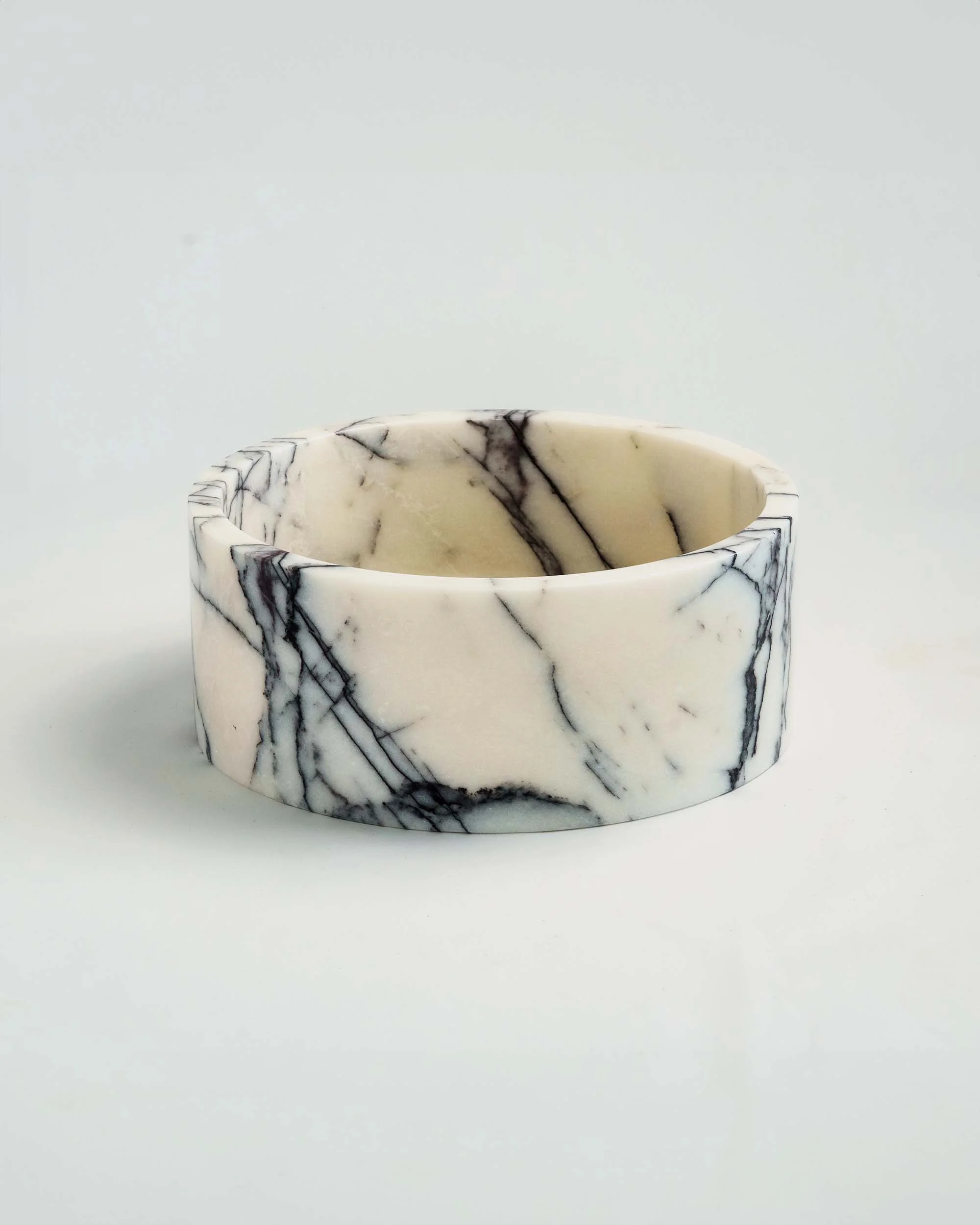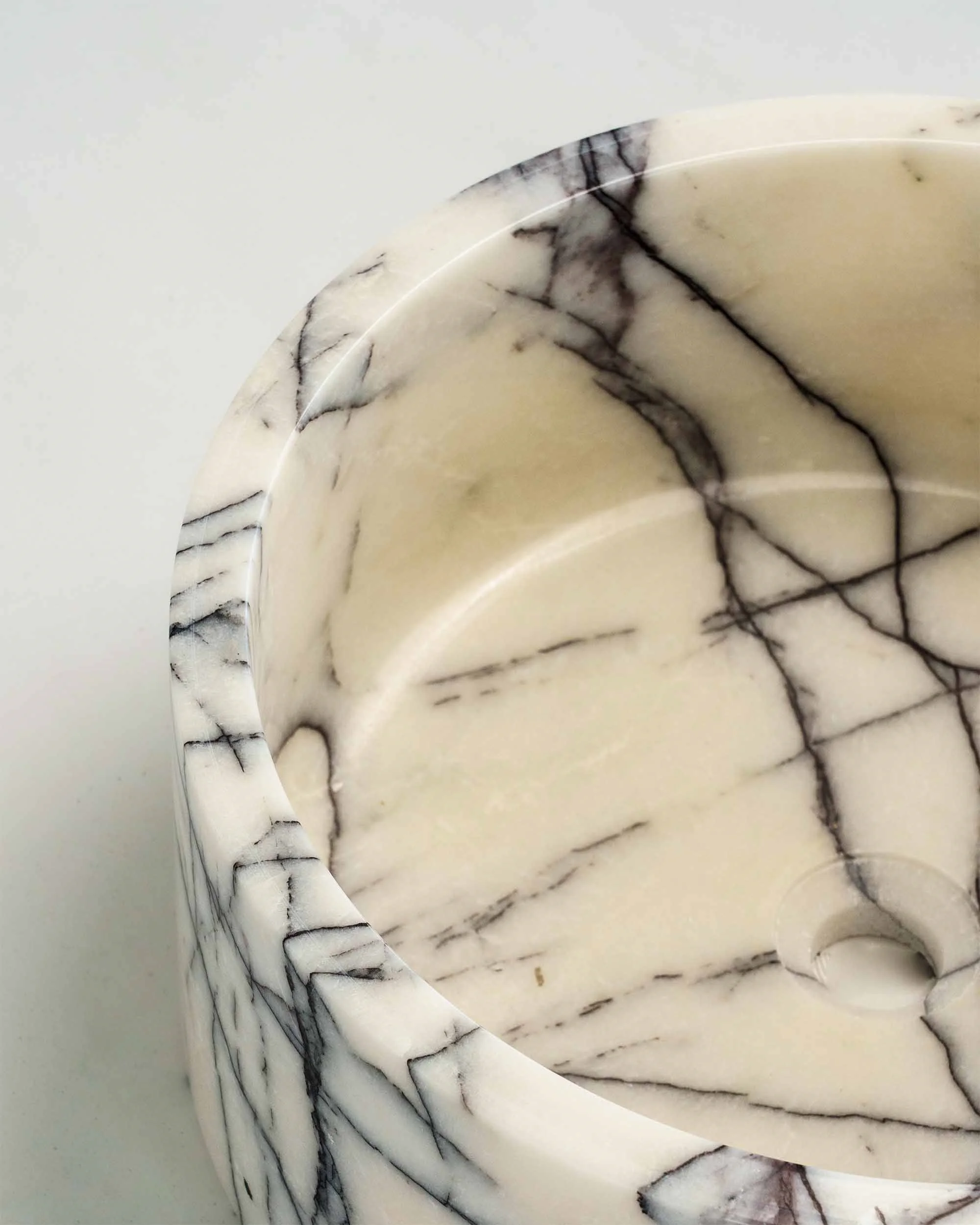 ‘Ασπρoς νιπτήρας στρόγγυλος από μάρμαρο lilac με επίπεδο πάτο.