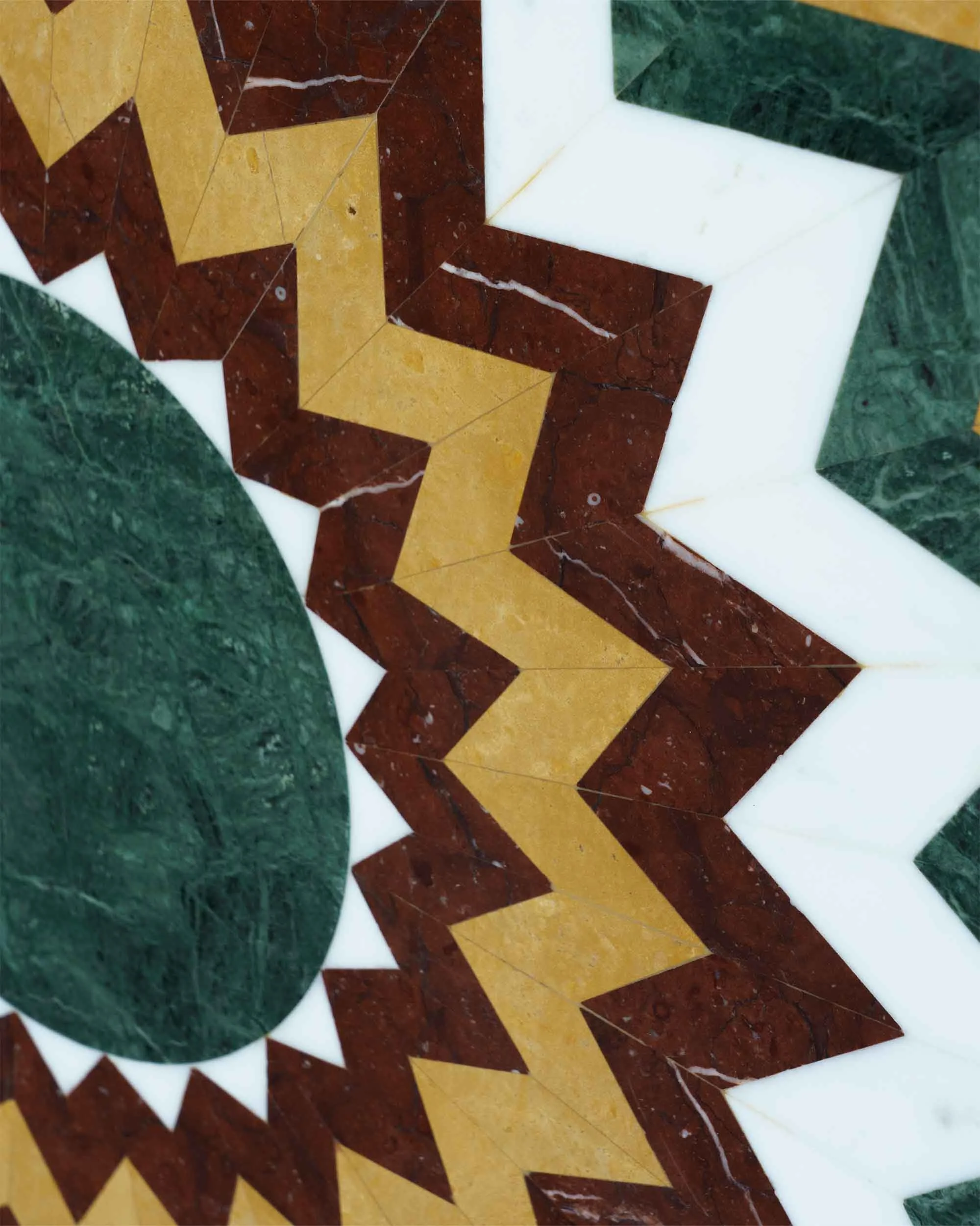 Πολύχρωμο μαρμαροθέτημα με παράσταση ήλιου .