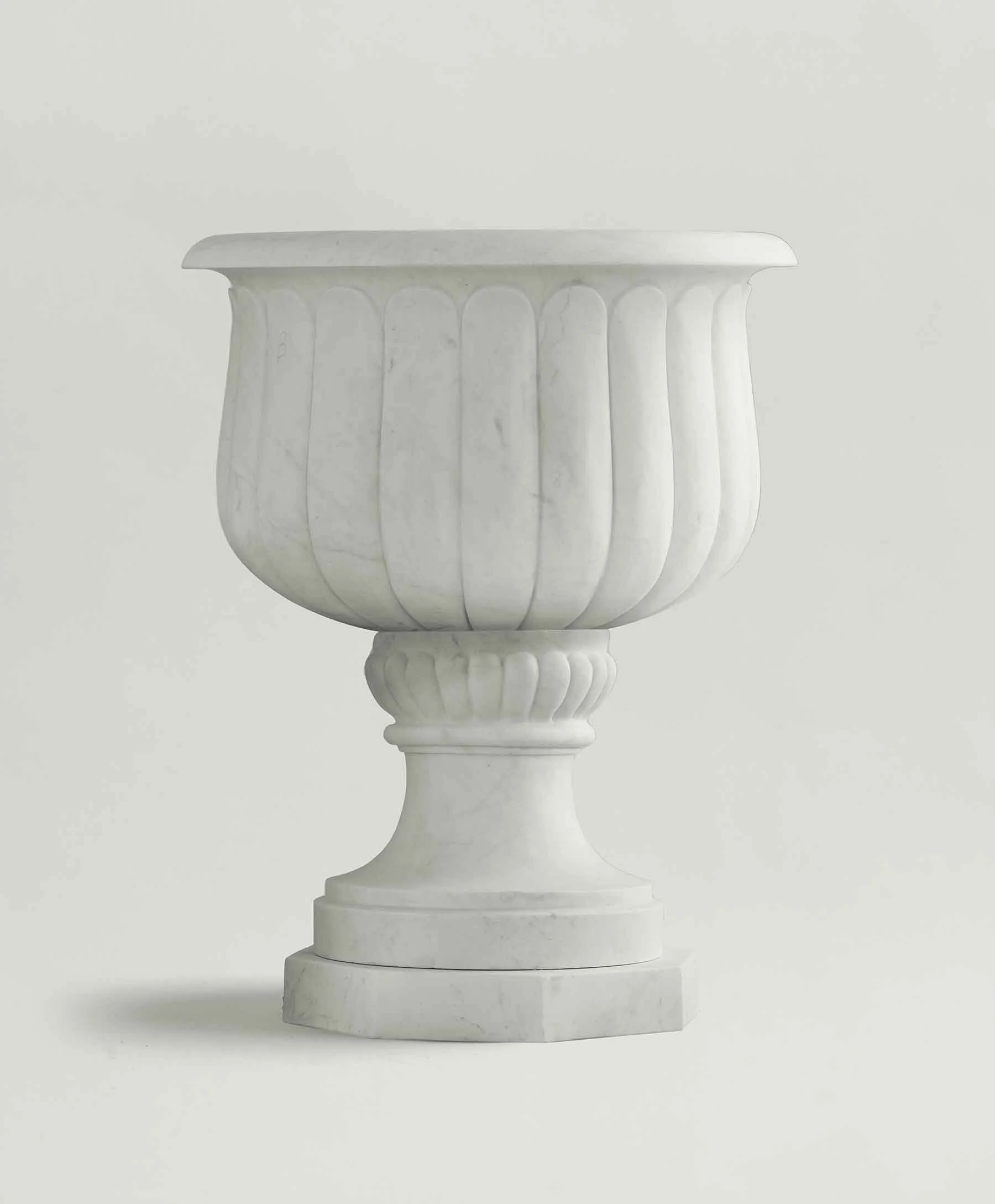Λευκή μαρμάρινη φιάλη αγιασμού σκαλιστή